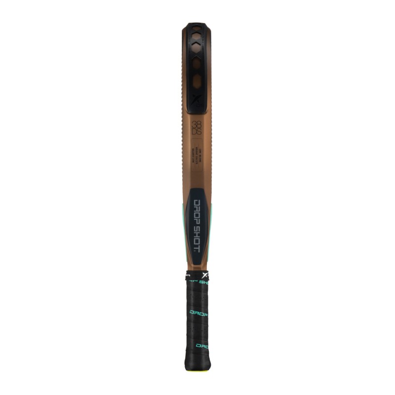 The racket head has a teardrop shape with a 3D structure to give extra effect to the ball. The sweet spot is slightly upwards for more power. The core of the racket is made of EVA Soft Low Density material, this material is known for its elasticity and lightness.