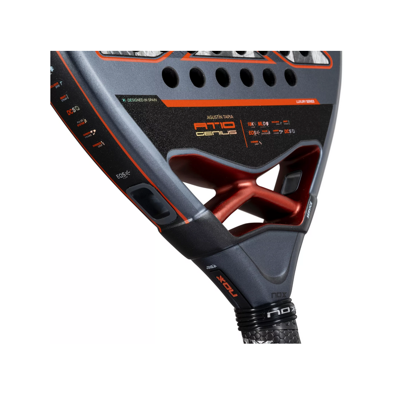 La Nox AT10 Pro Cup Comfort est la raquette de padel destinée aux joueurs moyens et récréatifs qui apprécient le confort et le contrôle. Avec une forme en forme de larme, un noyau souple, un point d'équilibre moyen, une surface flexible et un poids de 360 ​​à 375 grammes, cette raquette offre une maniabilité et une adhérence optimales grâce au nouveau capuchon octogonal.