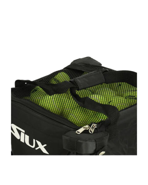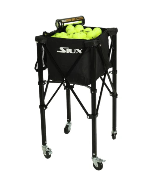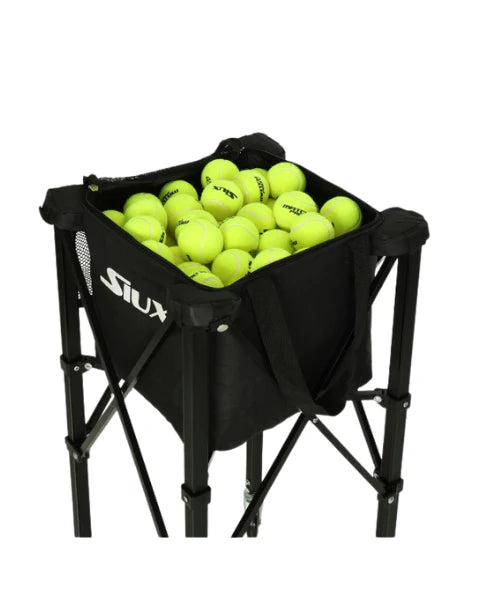 Le panier à balles Siux est idéal pour tout entraîneur de padel ou joueur passionné. Pouvant contenir jusqu'à 50 balles, ce panier offre un espace généreux pour un entraînement sans interruption. Son cadre robuste et pliable facilite son transport et son rangement, tandis que son matériau respirant assure une bonne circulation de l'air, prolongeant ainsi la durée de vie de vos balles.